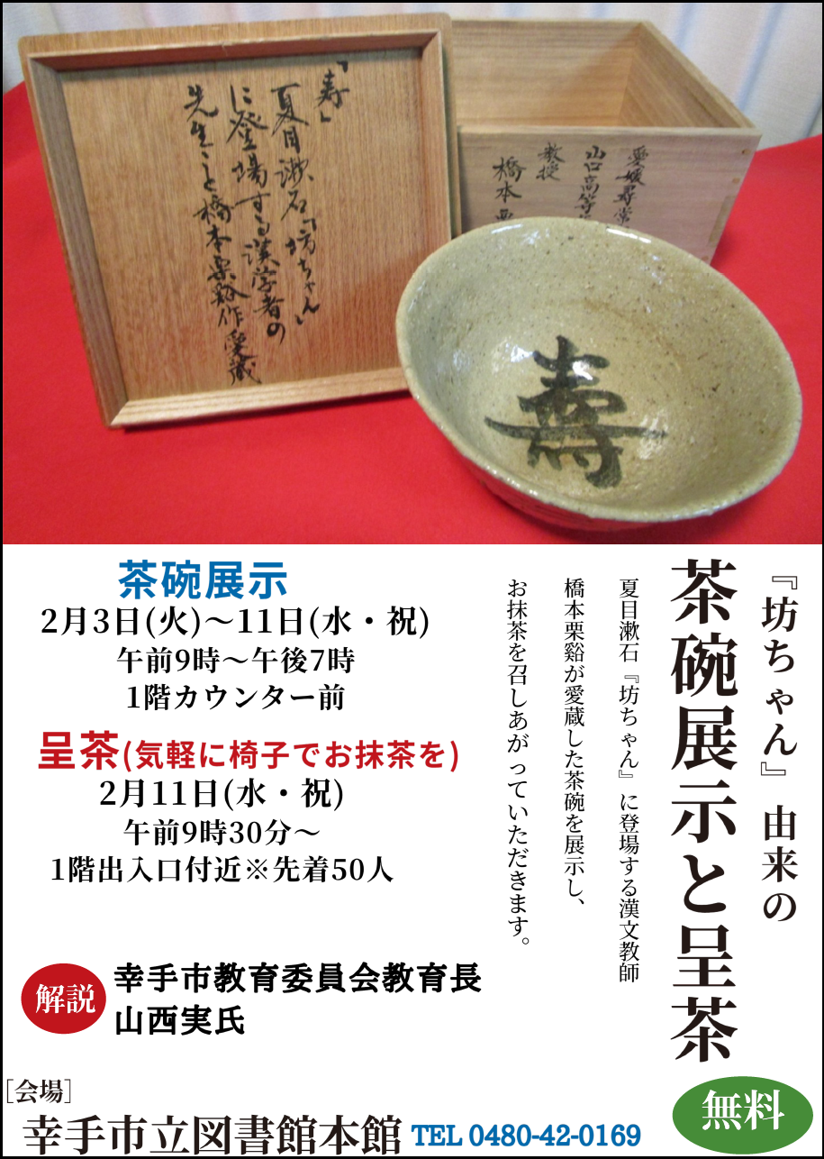 『坊ちゃん』由来の茶碗展示と呈茶
